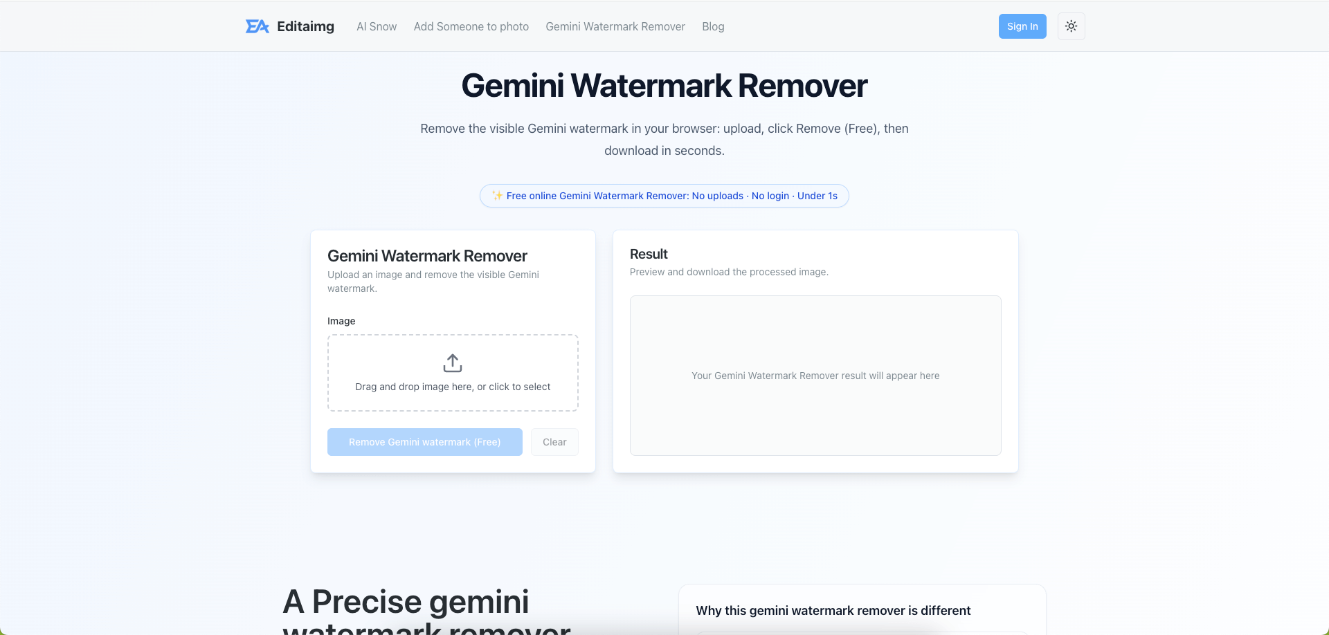Ready to clean up your images? We have built a free tool specifically optimized for Gemini's watermarking algorithm.